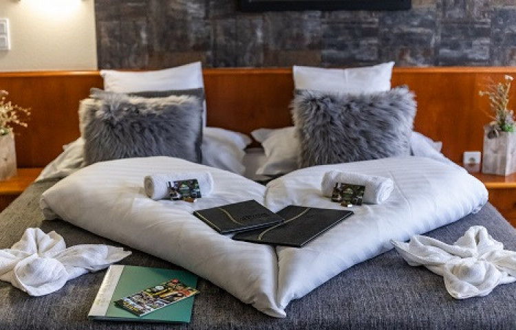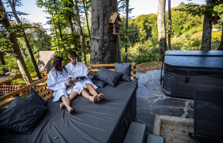 Vendégeink az egyedülálló erdőwellnesst is kipróbálhatják. A közvetlen erdőkapcsolattal rendelkező területen egy szabadtéri panoráma és zuhanyzót jakuzzit helyeztünk el, ahol a kényeztető wellness élményt megfűszerezi a friss hegyi levegő, az erdő minden évszakban varázslatos színei és a háborítatlan csend.